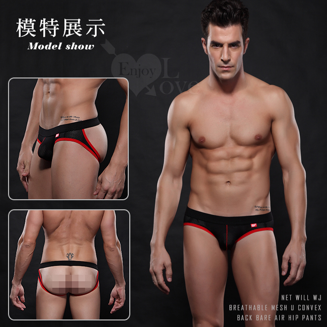 【網將WJ】透氣網孔U凸後裸空翹臀內褲﹝黑 S﹞