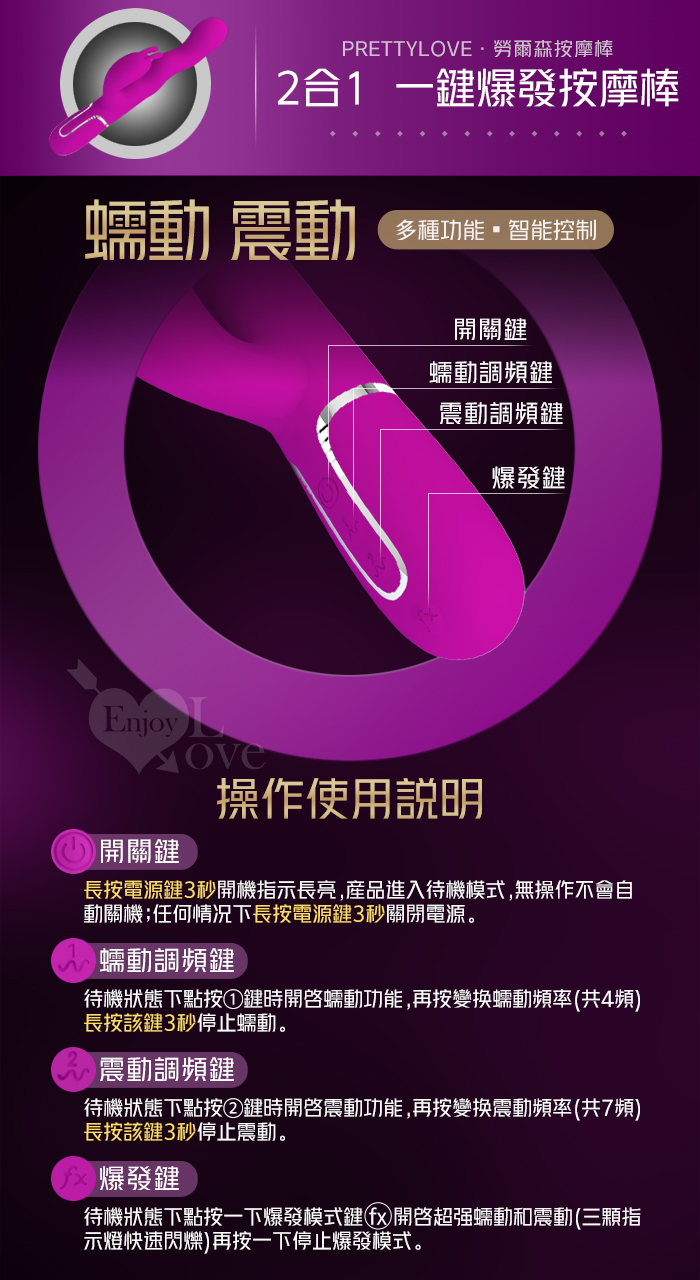 | 派蒂菈 ‧ Loursen 勞爾森 4蠕動+7震動 瘋狂蠕動震感內外夾擊入體按摩棒-洋紅