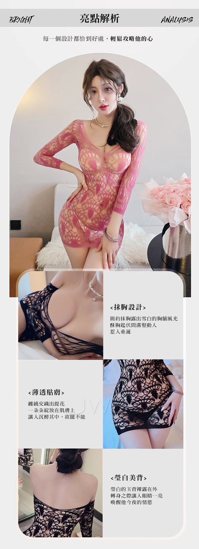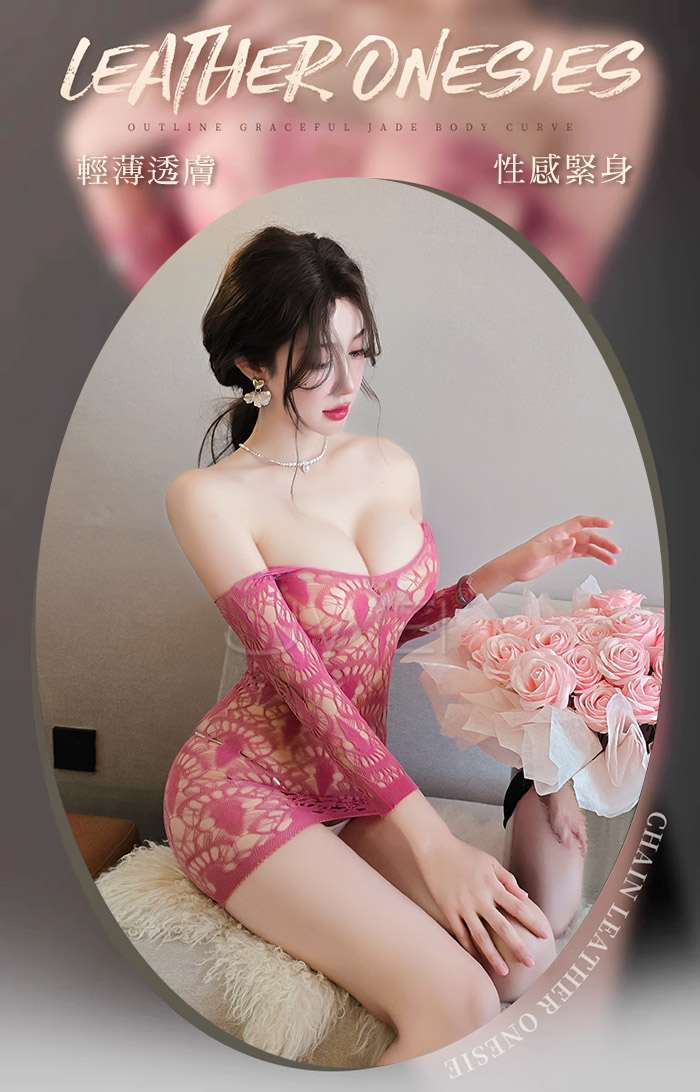 嵐花嫣然.知性提花大網眼透膚性感包臀網衣【裸粉色】