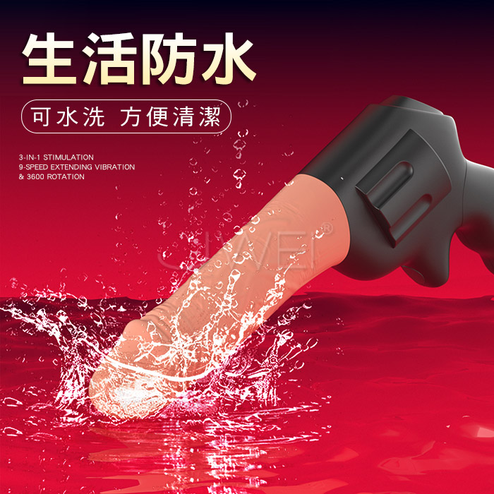 | 仿真手槍.9種頻率 伸縮+轉珠+震動 三合一逼真陽具按摩棒