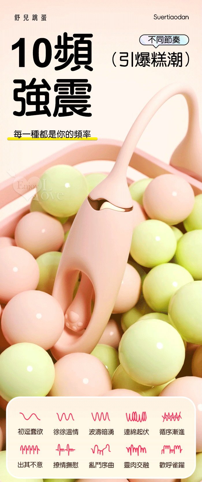 | ROSELEX 舒兒 ‧ 全方位拍打撩撥/酥麻爽震 跳蛋按摩器﹝10頻獨立調控/入體強震+內腔拍擊﹞粉