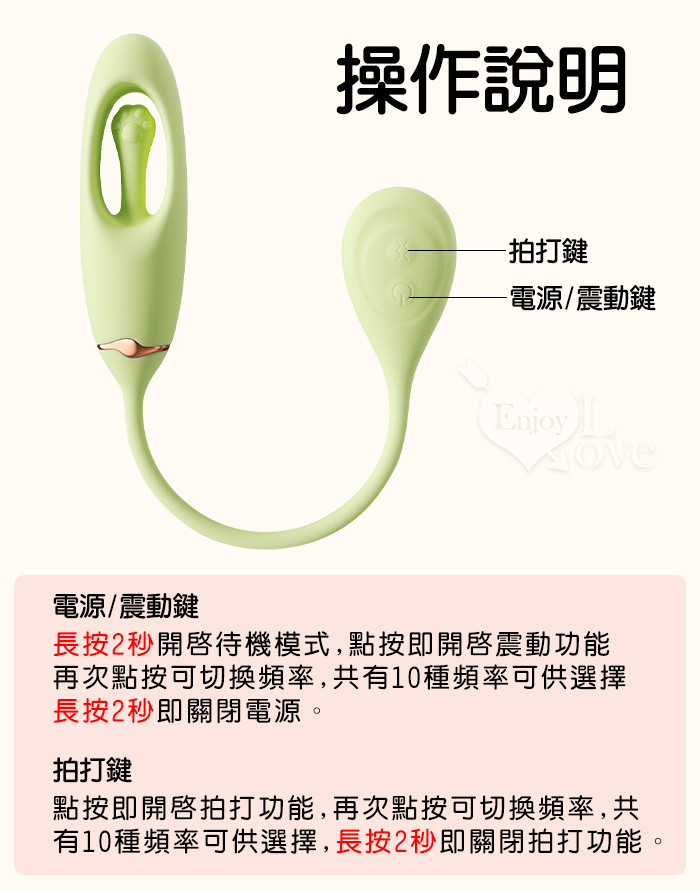 ►您現在的位置:首頁>ROSELEX 舒兒 ‧ 全方位拍打撩撥/酥麻爽震 跳蛋按摩器﹝10頻獨立調控/入體強震+內腔拍擊﹞粉