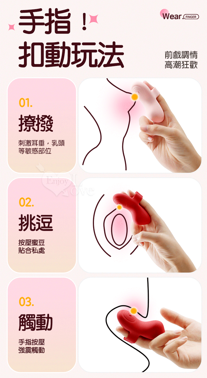 ROSELEX 勞樂斯 ‧快樂指尖 ‧ 10頻深層精準震顫陰蒂刺激調情自慰兩相宜穿戴按摩器 - 可手機APP遙控﹝具兩種操控模式﹞紅