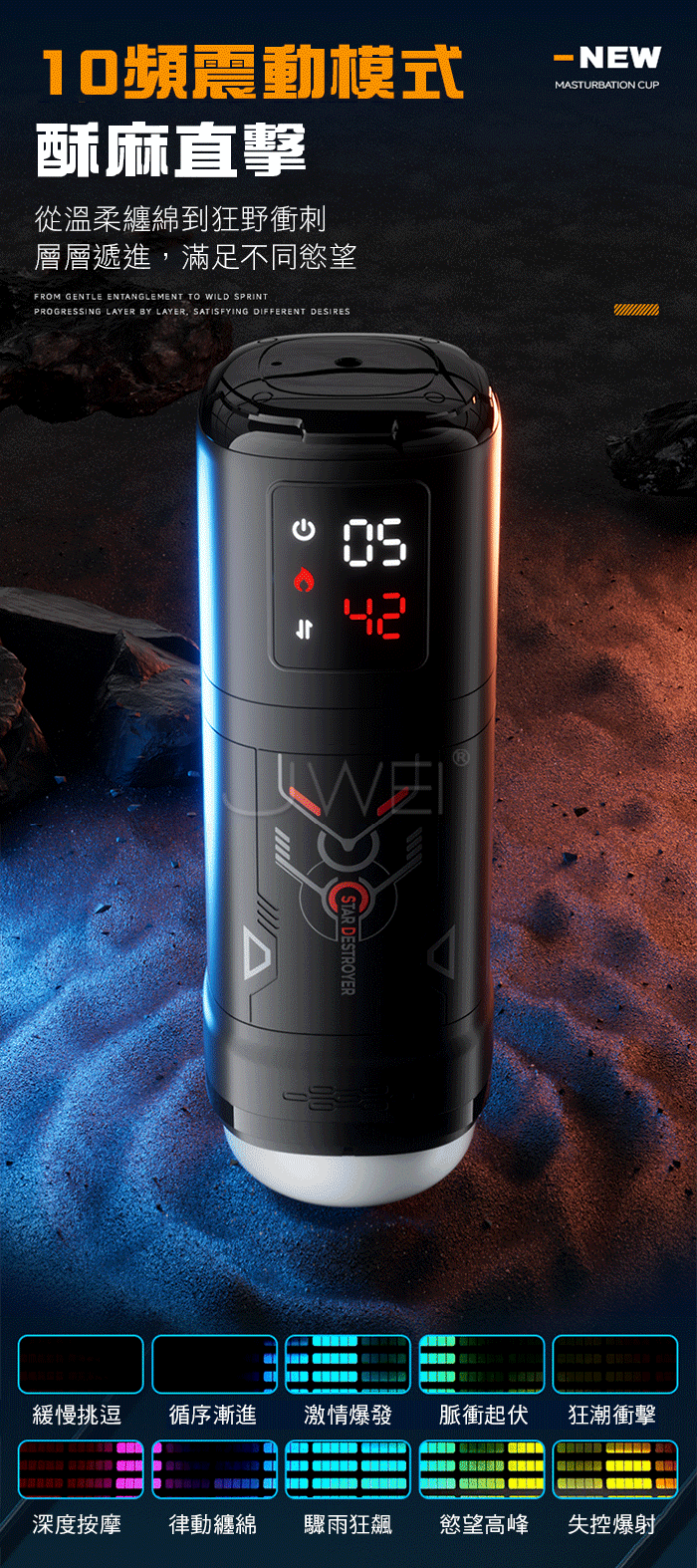 10頻震動模式酥麻直撃,從溫柔纏綿到狂野衝刺,層層遞進滿足不同慾望