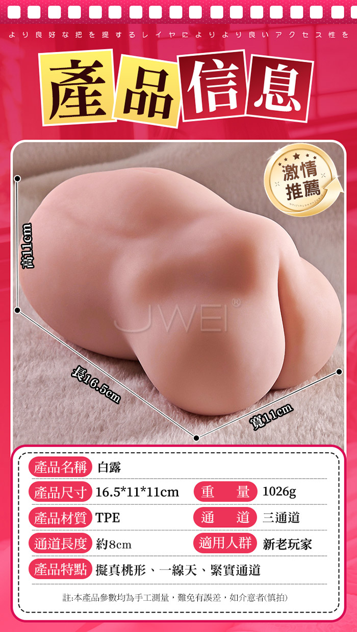 白露.一線天擬真桃型 三通道雙子宮新體驗 緊實刺激自慰套 【附贈日本原裝.洗い不要 濃密潤滑液-300ml】