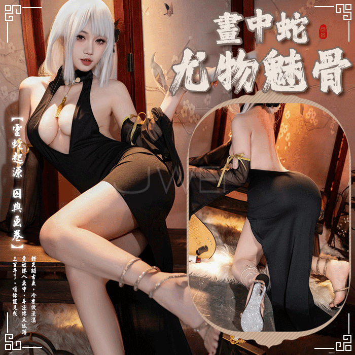 尤物魅骨.深V性感露溝美背分割飄逸長裙襬旗袍【連身裙+袖子*2+T褲】