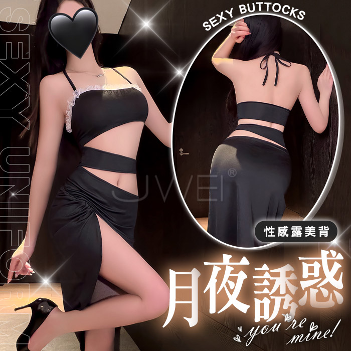 雲端蜜語.深V露溝裙襬鏤空包臀慾情空姐套裝【上衣+短裙+絲巾+T褲】