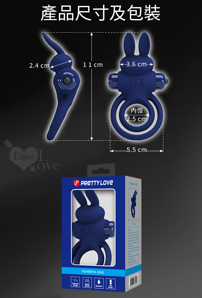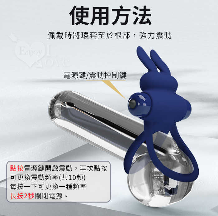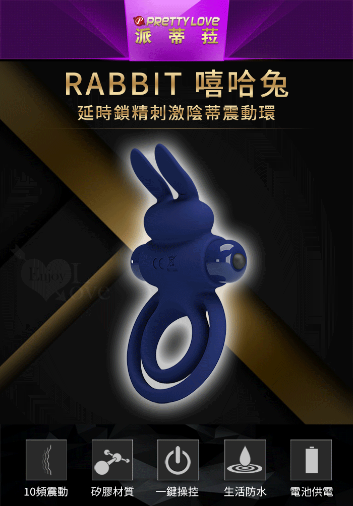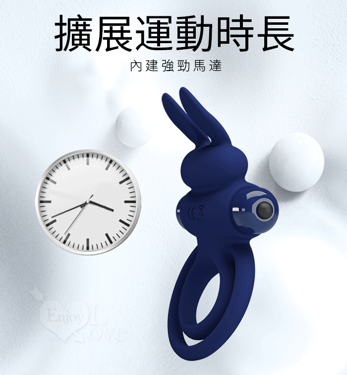 派蒂菈 ‧ Rabbit 嘻哈兔 延時鎖精刺激陰蒂震動環﹝男女同享共震+10頻強震+親膚矽膠﹞寶藍