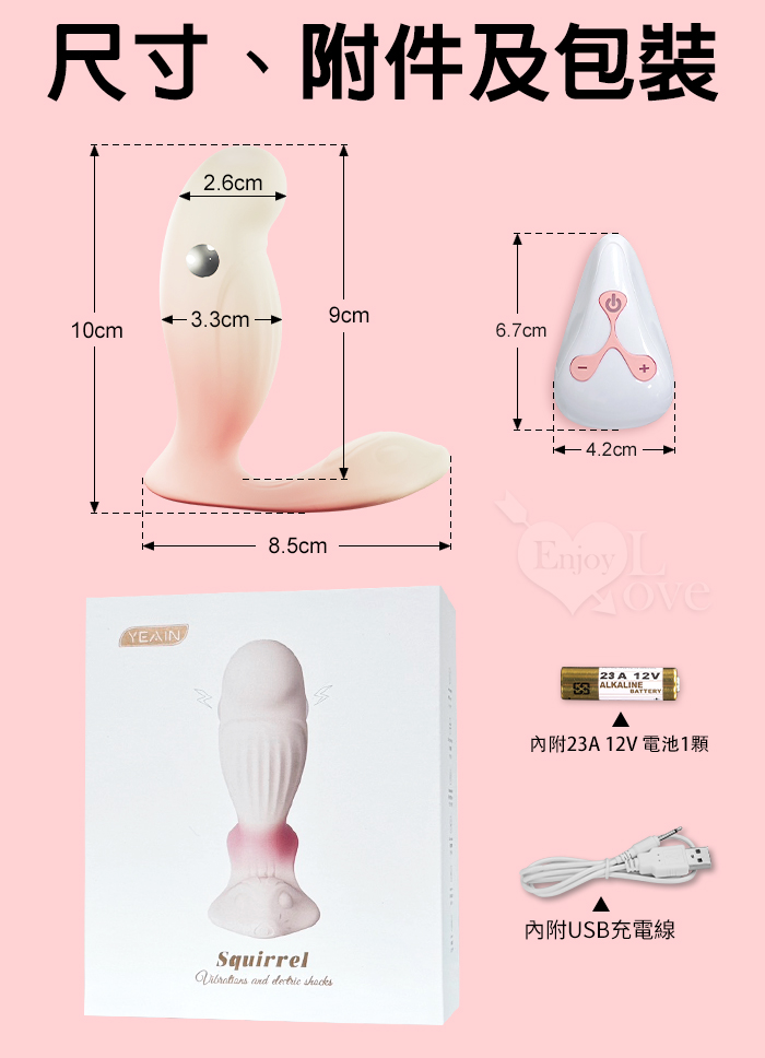 | YEAIN夜樱 ‧ 松鼠 7頻顫電觸感X12頻震動起舞~3點齊發遙控穿戴按摩器~時尚粉白漸色調