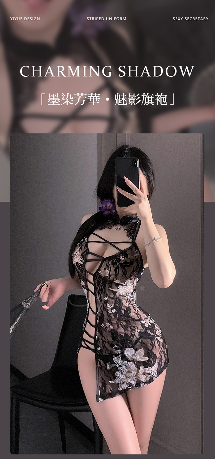►您現在的位置:首頁>魅影芳華.國風蕾絲側開衩挖空露乳美背時尚旗袍【旗袍+T褲】