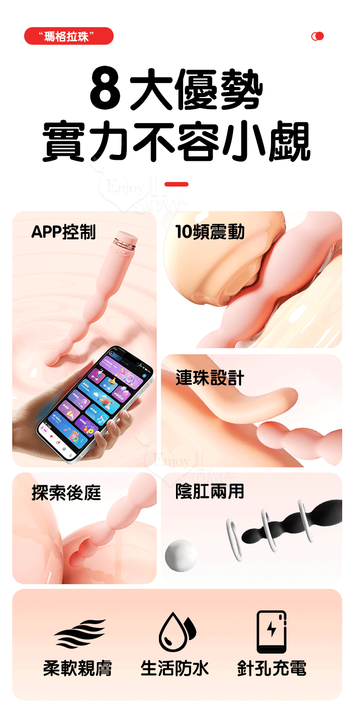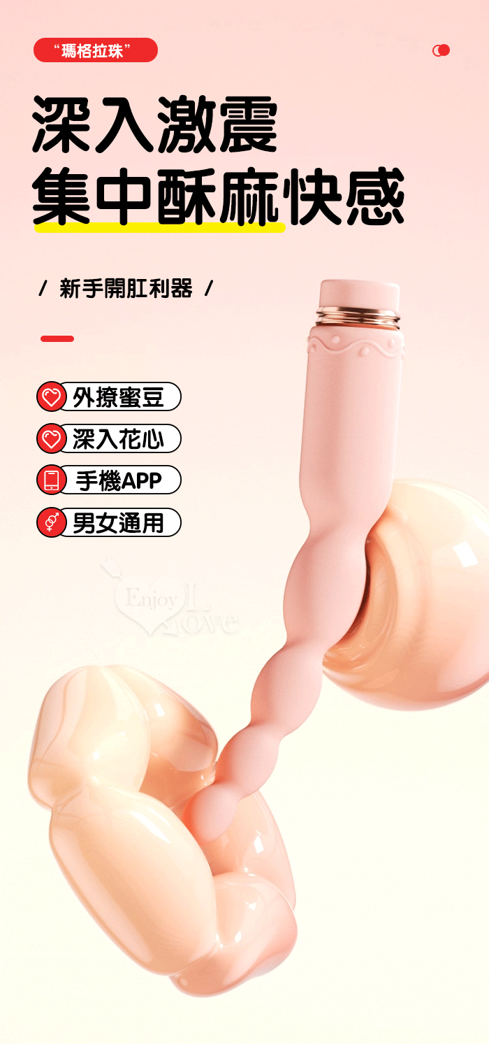 ROSELEX 新手玩家 瑪格連環拉珠按摩棒~10頻強勁震動/細小易入/男女通用/可手機APP遙控
