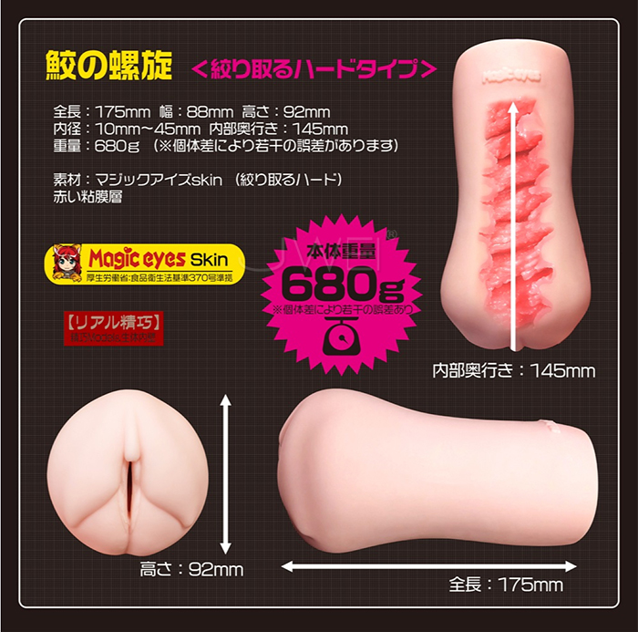 日本原裝進口Magic eyes.鮫の螺旋 搾り取る 肉厚7迴旋通道自慰器-HARD