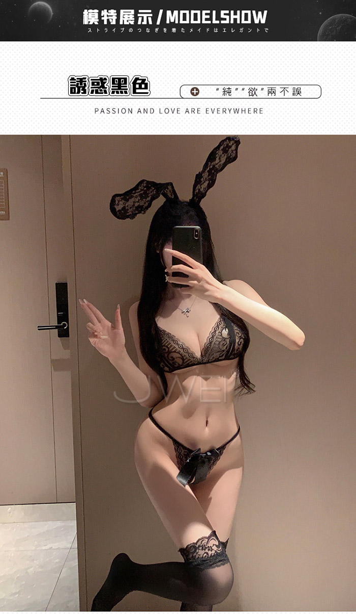 ►您現在的位置:首頁>嫵媚佳人.性感蕾絲透視開縫胸罩+蝴蝶結開襠丁字褲【黑色】