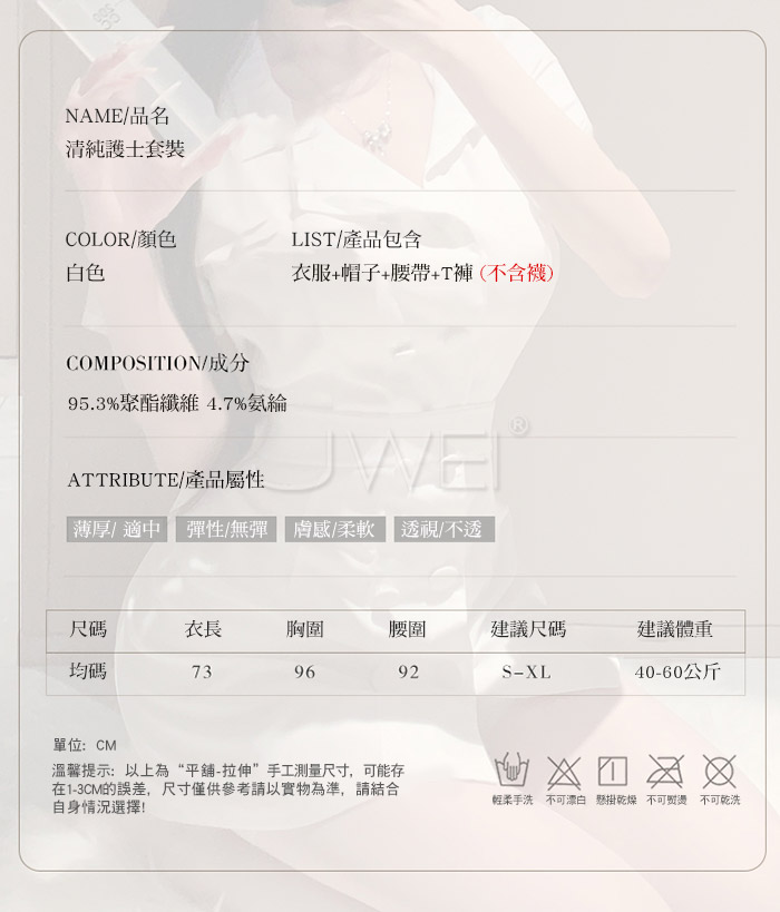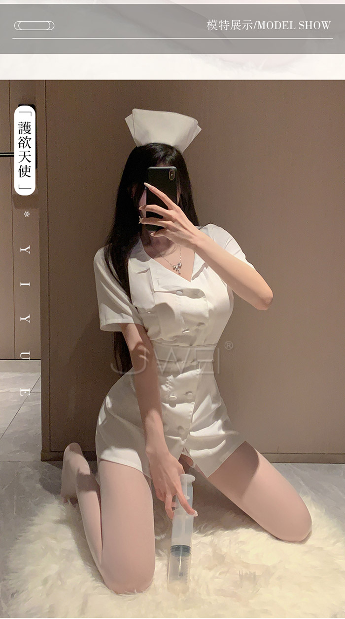 首頁>護欲天使.清純白衣護士套裝【衣服+帽子+腰帶+T褲】