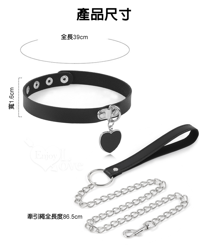 SM 刑奴扮演 ‧ 愛心掛飾項圈+牽引繩~金屬鐵鏈組合