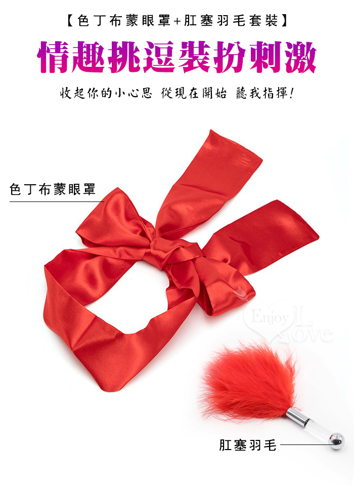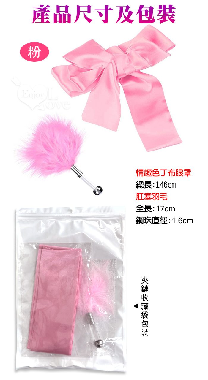 色丁布蒙眼罩+肛塞羽毛套装﹝挑逗+裝扮刺激﹞粉紅色