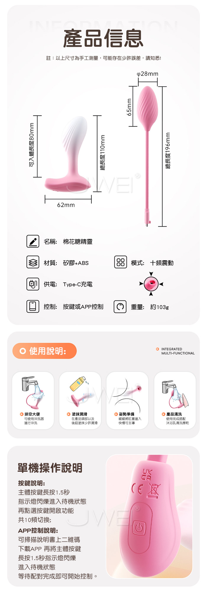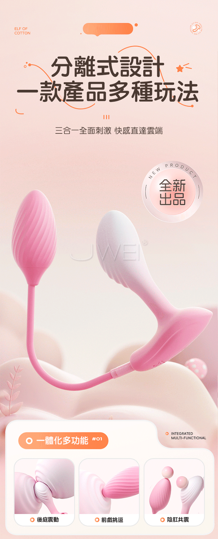 謎姬 MizzZee.棉花糖精靈.10段雙驅變頻爆震 APP智能遠控 分離式跳蛋後庭震動肛塞
