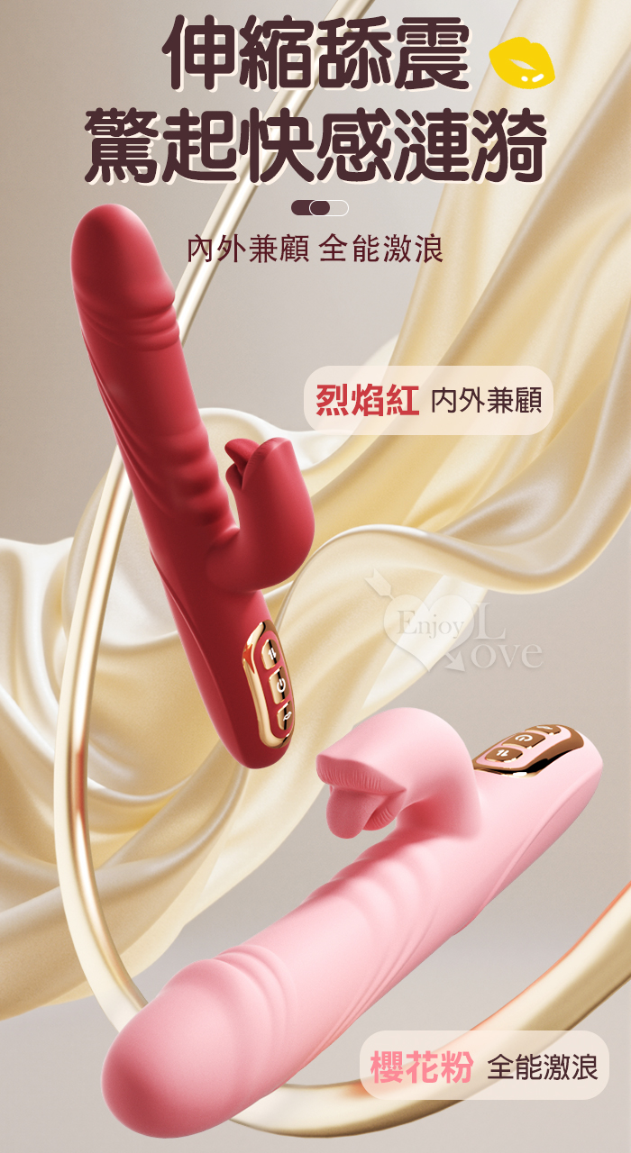 Soul Choice 露西 ‧ 動感10X伸縮10X舔震仿真老二按摩棒﹝衝擊蜜穴+唇舌強震+智能加溫+親膚矽膠+靜音防水/便捷充電﹞紅