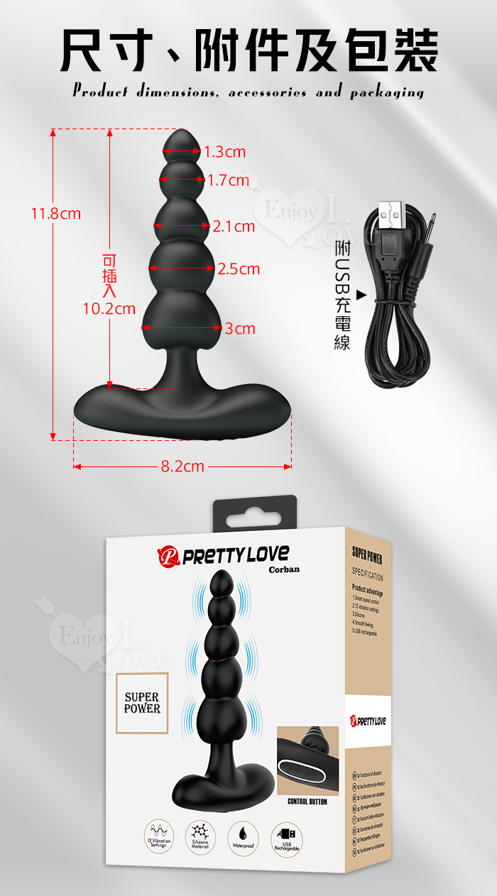 ►您現在的位置:首頁>派蒂菈 ‧ CORBAN 科爾班 12頻強力震動~拉珠後庭按摩器﹝男女通用/柔軟矽膠/輕鬆入體/USB充電﹞