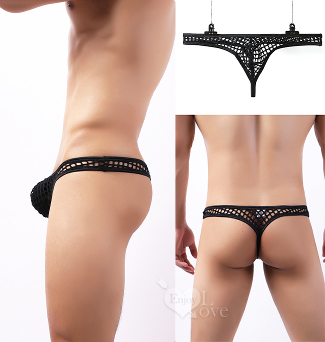 《 Enjoy Love 》性感半透大網孔男士丁字褲 - 黑﹝L﹞