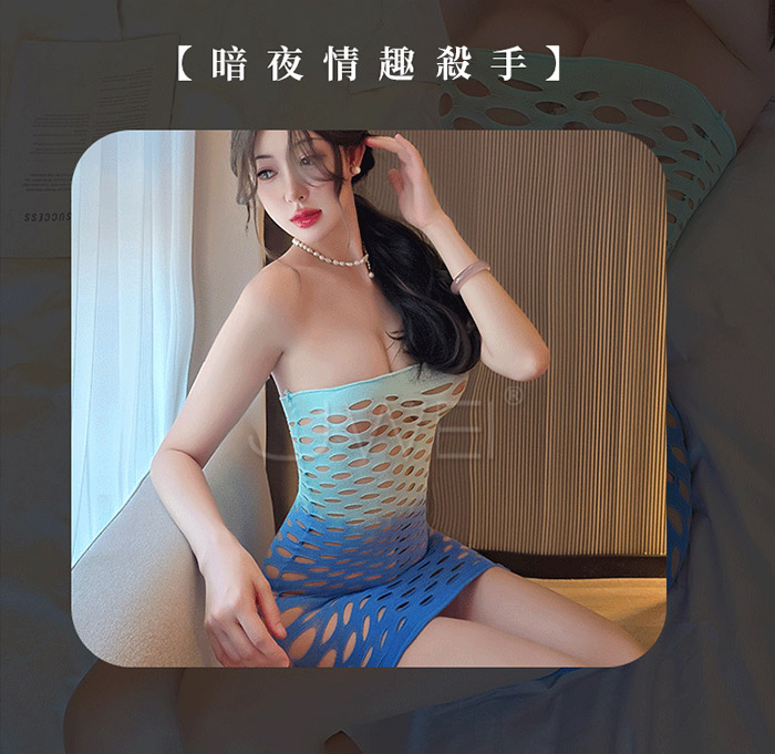 ►您現在的位置:首頁>暗夜天使.漸變色一字領大網情趣連體性感貓裝【漸變藍】