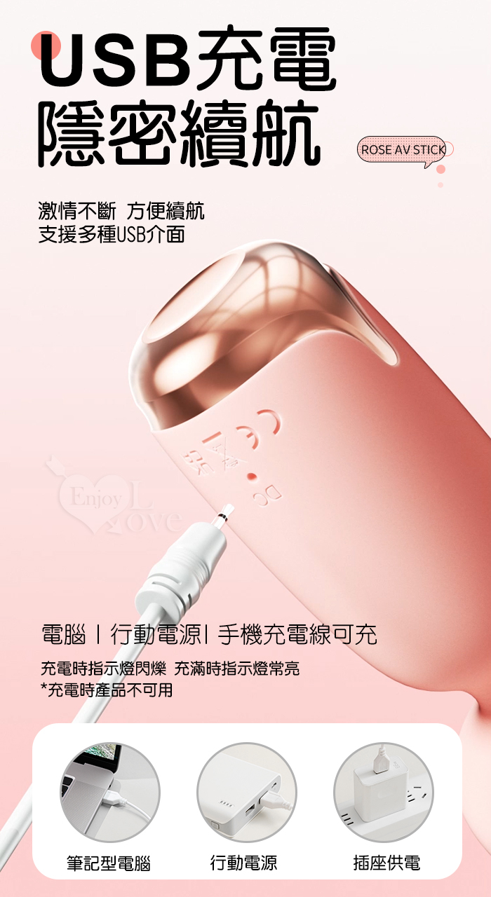 | ROSELEX 玫瑰AV棒 ‧ 智趣潮玩10頻震撼衝擊 小巧随身360度彎曲加溫AV棒 - 粉