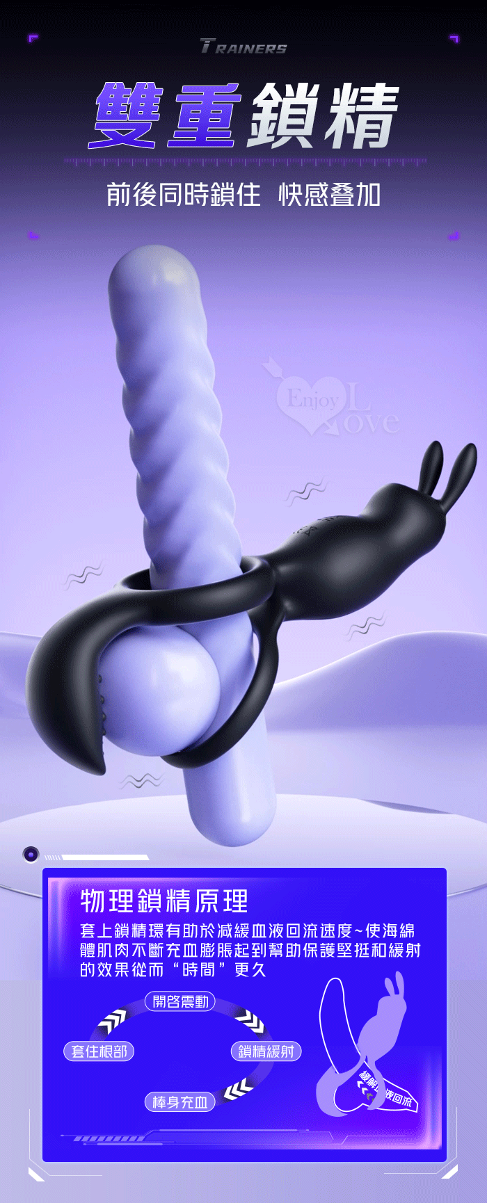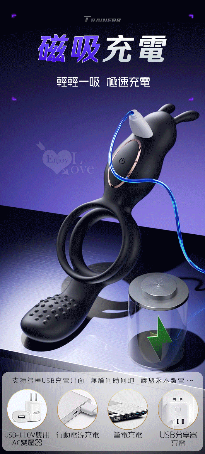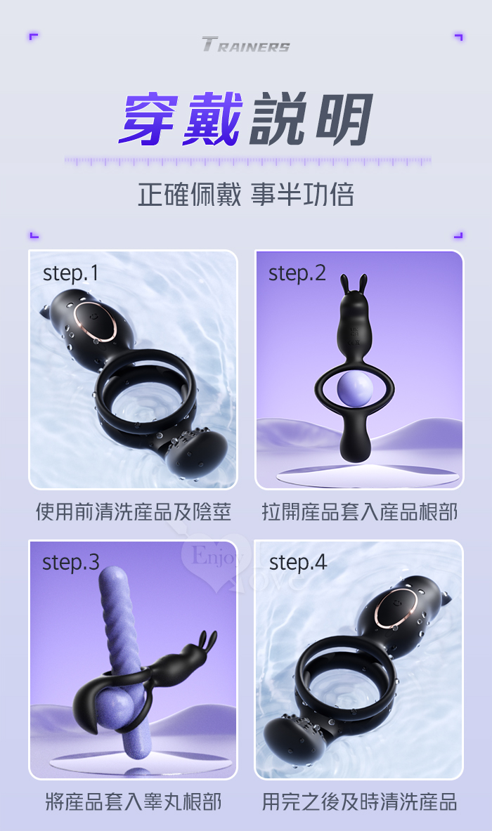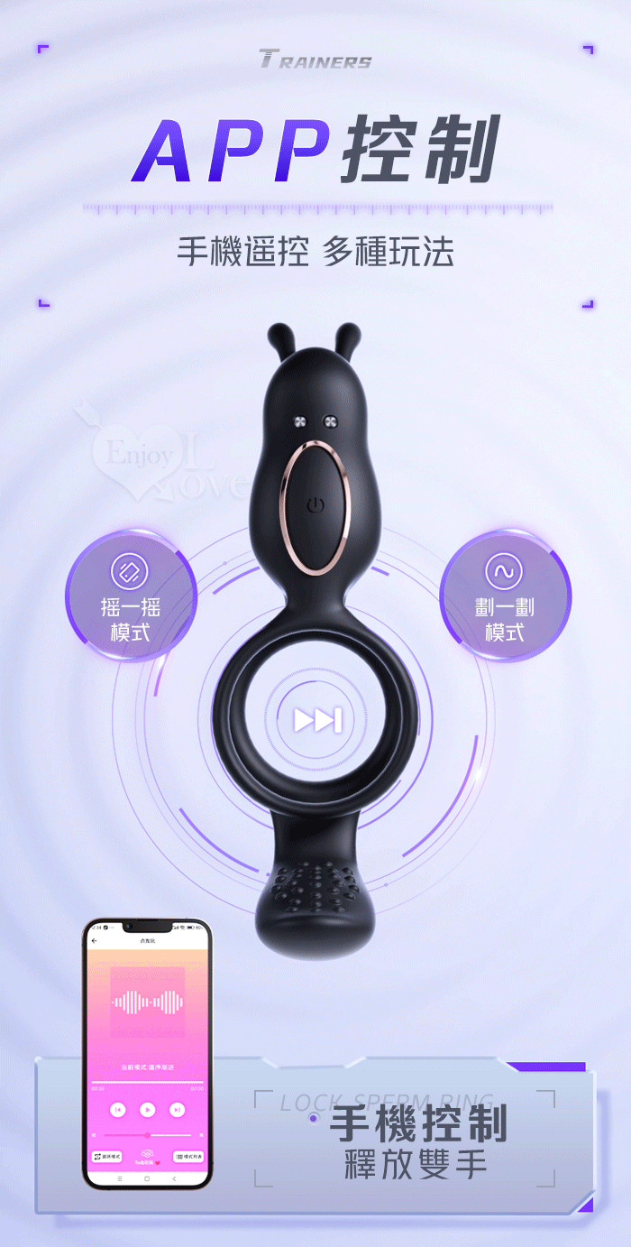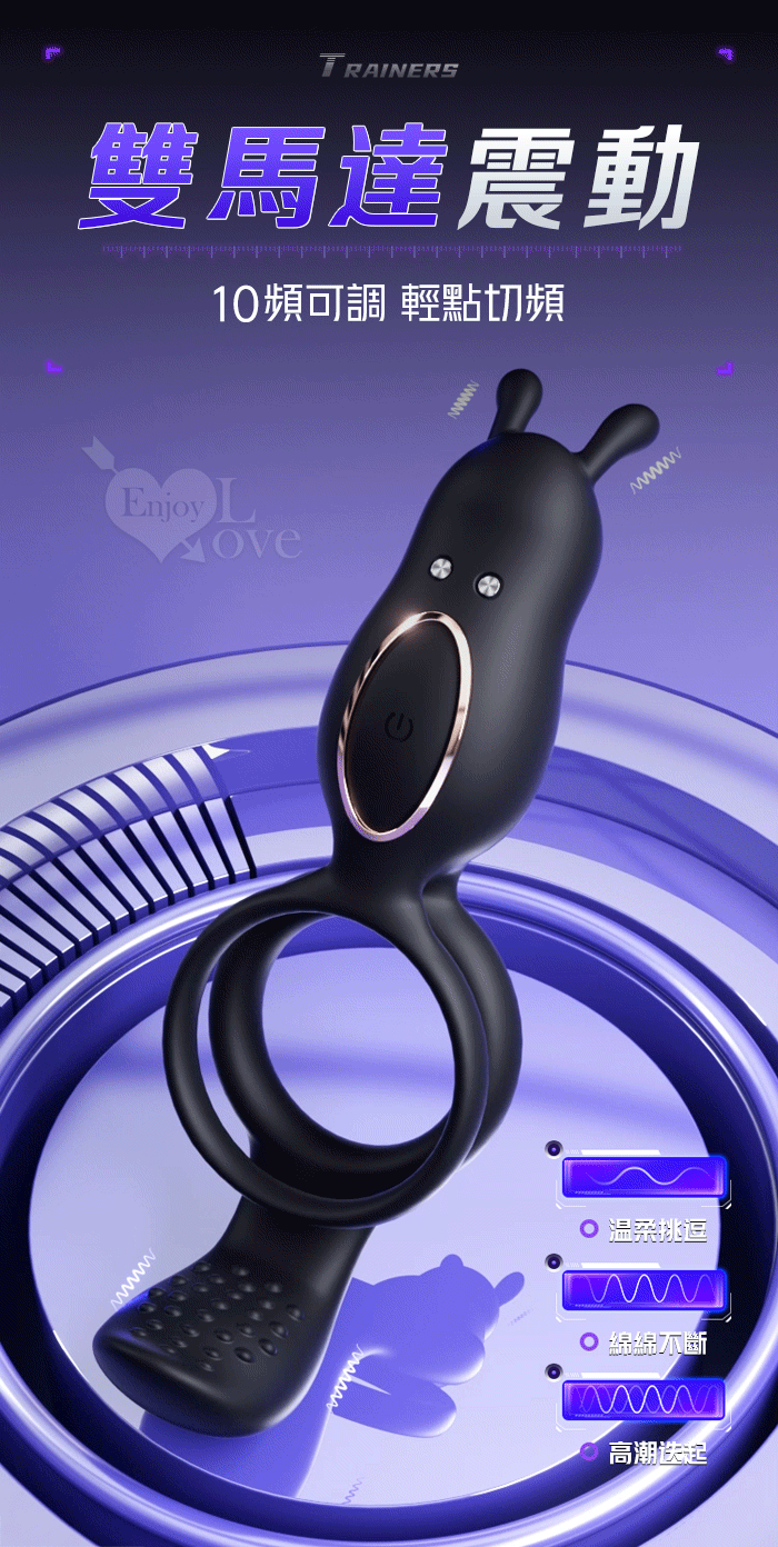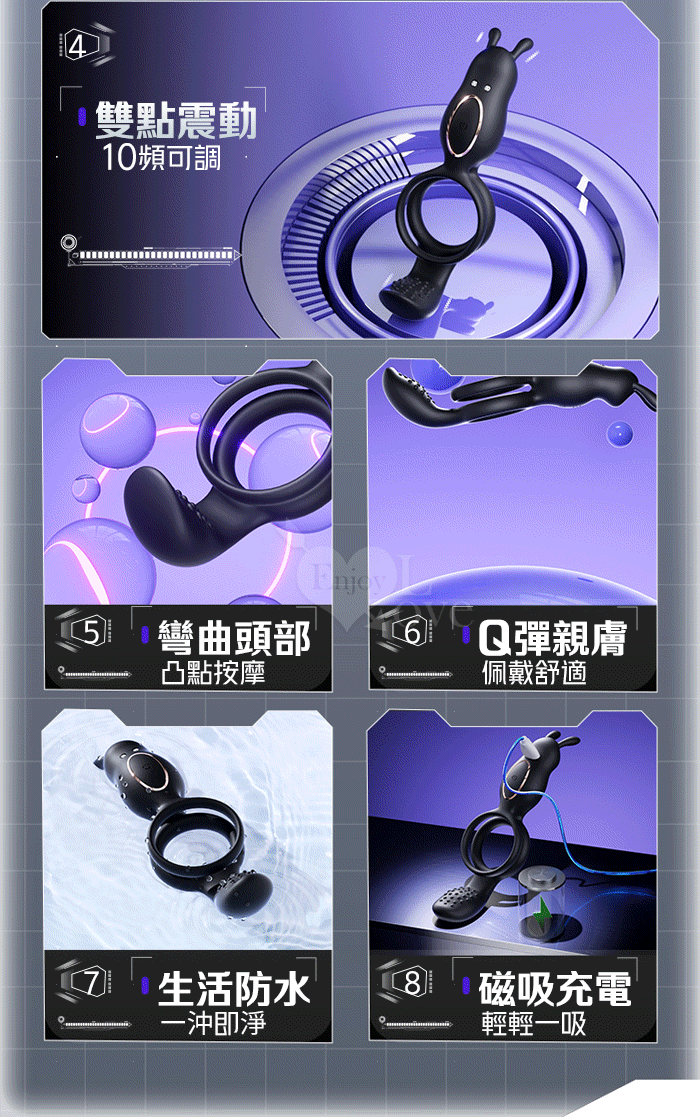 ROSELEX 捷久耐戰男女歡樂套環﹝10頻雙點強震+雙環鎖精緩射+兔撩震陰蒂+尾巴撩震蛋蛋+共震調情﹞可手機APP遙控﹝具兩種操控模式﹞